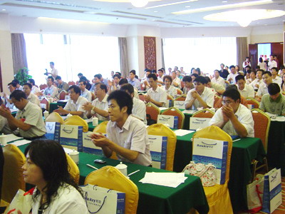 臺(tái)風(fēng)“派比安”絲毫影響不了企業(yè)的熱情,在凱旋華美達(dá)大酒店會(huì)議室里,作滿了廣大企業(yè)的代表,大家都不愿意放棄這個(gè)交流好機(jī)會(huì)。