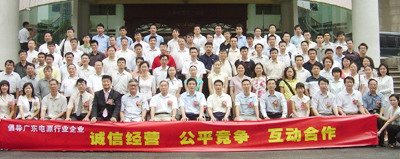 中午時分,廣東省電源行業(yè)協(xié)會第一屆會員大會結(jié)束后,參加會議的全體人士在廣州市凱旋華美達大酒店門口合影留戀,共同見證行業(yè)協(xié)會的成立。