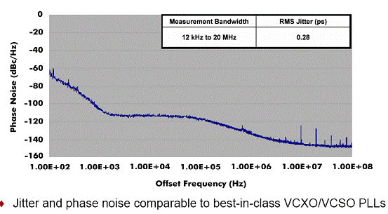 (1)極低的輸出抖動 0.3ps RMS 抖動。